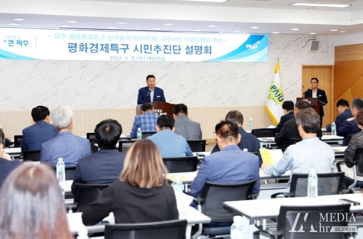 미디어아워 임다연 기자 | 파주시는 평화경제특구 조성 구체화 방안을 마련하기 위한 연구용역을 시작한 가운데 시민 의견을 수렴하기 위해 지난 8일 ‘평화경제특구 유치 시민추진단 설명회’를 개최했다.