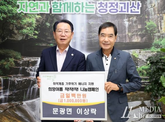 미디어아워 임다연 기자 | 문광면 주민 이상락 씨가 지난 27일 취약계층 기후위기 에너지지원을 위한 ‘희망여름 착!착!착! 나눔캠페인’에 동참해 1백만원의 성금을 기부했다.