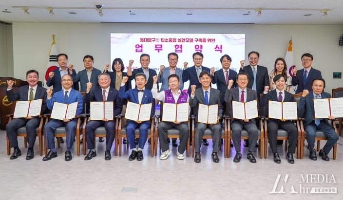 미디어아워 임다연 기자 | 서울 동대문구는 28일 한국동서발전, 한국에너지공단, 에너지엑스와 컨소시엄을 구성, 관내 4개 대학교(경희, 서울시립, 한국외국어, 삼육보건) 및 전통시장상인연합회와 함께 탄소중립 실현을 위한 ‘동대문구 건물에너지 효율화사업 업무협약(MOU)’을 체결했다고 밝혔다.