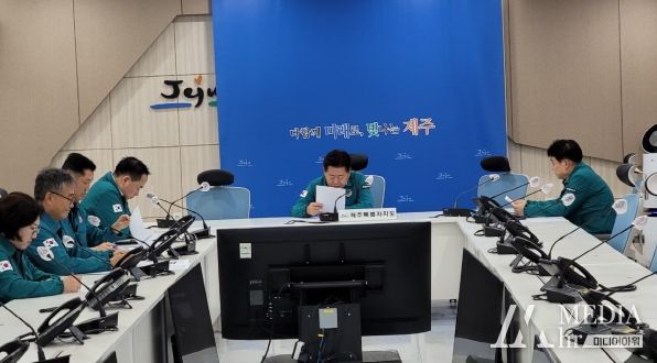 미디어아워 임다연 기자 | 오영훈 제주특별자치도지사가 30일 오전 도 재난안전대책본부를 방문해 장마철 집중호우 및 강풍에 대한 대응 상황을 보고 받고 대책 상황을 점검했다.