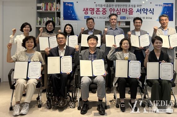 미디어아워 임다연 기자 | 달서구는 지난 28일 신당동과 월성2동을 생명존중 안심마을로 조성하기 위한 '2024년 달서구 생명존중 안심마을 서약식'을 개최했다..
