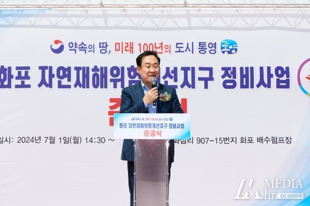 미디어아워 임다연 기자 | 통영시는 용남면 화포마을 주민들의 오랜 숙원이었던 화포 자연재해위험 개선지구 정비사업 준공식을 지난 1일 개최했다.