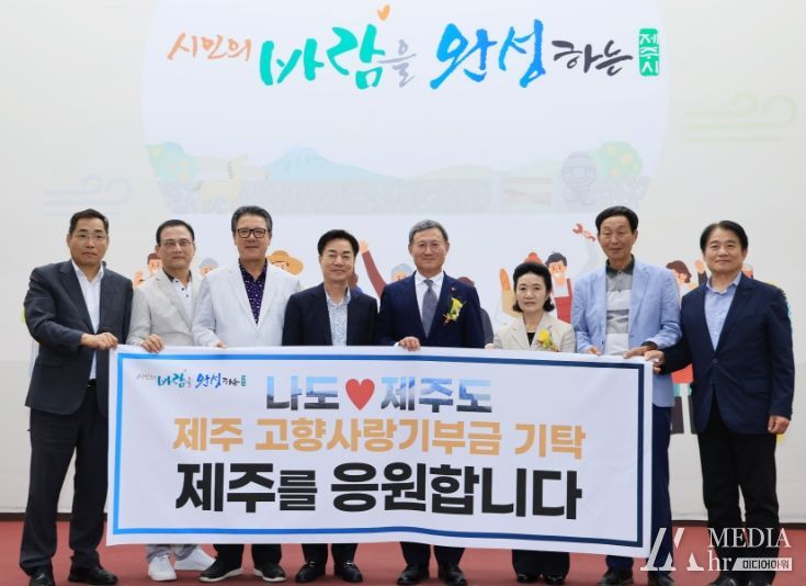 미디어아워 임다연 기자 | 제주시는 1일 제34대 김완근 제주시장의 취임을 축하하기 위해 직접 취임식장을 찾은 전국 농업관계자로부터 고향사랑기부금을 기탁받았다.