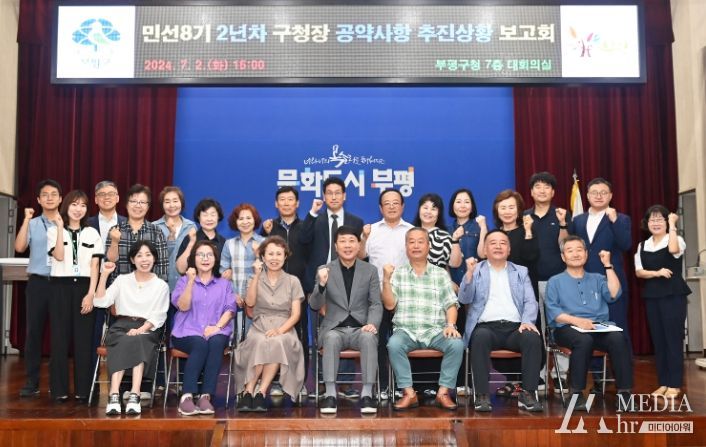 미디어아워 임다연 기자 | 부평구는 2일 구청 대회의실에서 부평구 공약이행평가단과 공약 추진 소관 국·소·과장이 함께하는 ‘민선8기 2년차 구청장 공약사항 추진상황 보고회’를 개최했다.