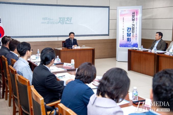 미디어아워 임다연 기자 | 제천시는 지난 3일 제천시청 박달재실에서 민선8기 2주년을 맞아 기업하기 좋은 제천 만들기를 위해 기업인들과의 간담회를 개최했다.