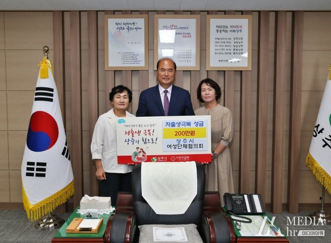 미디어아워 임다연 기자 | 상주시여성단체협의회와 한국부인회 상주시지회는 7월 3일 오전 10시 상주시청 시민의 방에서 상주시 저출생극복 성금 300만원(여성단체협의회 200만원, 한국부인회 100만원)을 기탁했다.