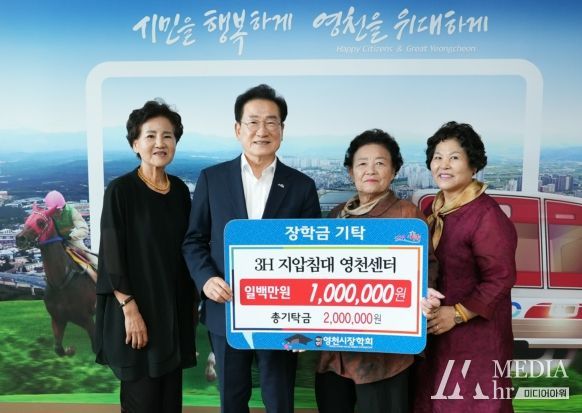 미디어아워 임다연 기자 | 4일 ㈜태산에서 1,000만 원, 3H지압침대영천센터에서 100만 원의 장학금을 (재)영천시장학회에 기탁했다.