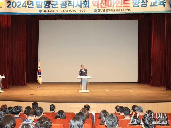 미디어아워 임다연 기자 | 함양군은 7월 4일과 5일 이틀에 걸쳐 문화예술회관 대공연장에서 공직자의 업무혁신과 조직문화 개선 등을 위한 ‘2024년 함양군 공직자 혁신마인드 교육’을 진행한다.