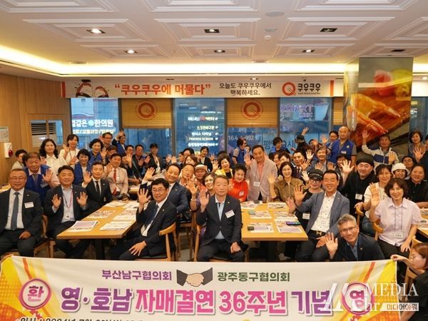 미디어아워 임다연 기자 | 지난 7월 2일 바르게살기운동 남구협의회는 경성대 쿠우쿠우에서 광주동구협의회와 영‧호남 자매결연 36주년을 기념하는 행사를 개최했다.