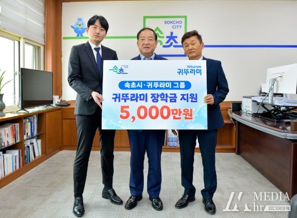 미디어아워 임다연 기자 | 귀뚜라미 그룹은 7월 4일 속초시와 장학금 지원 협약을 맺고 5,000만 원의 장학금을 전달했다.