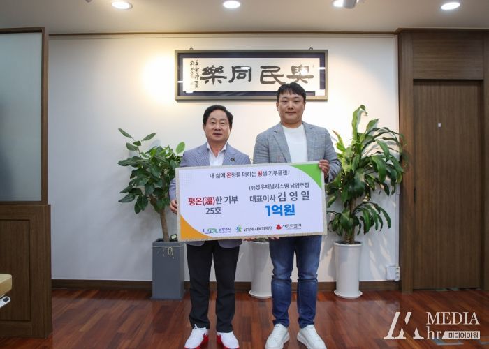 미디어아워 임다연 기자 | (주)성우패널시스템 남양주점은 16일 남양주시 1억 원 이상 기부클럽인‘평온(溫)한 기부’ 25번째 회원으로 가입했다.